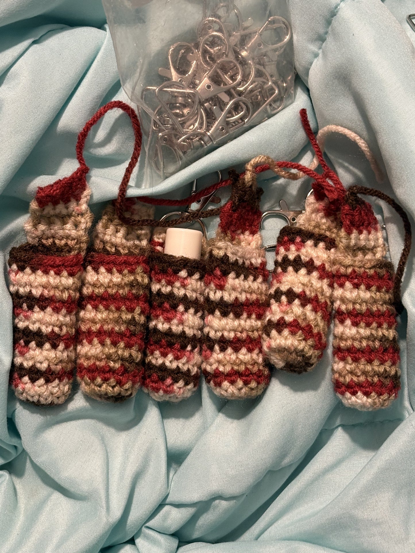 Are you always losing your tubed lip balms? Well, these crochet holders are made for you! These are all made by me, using an altered pattern.