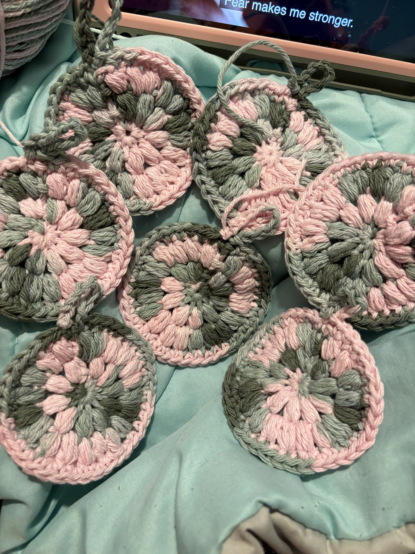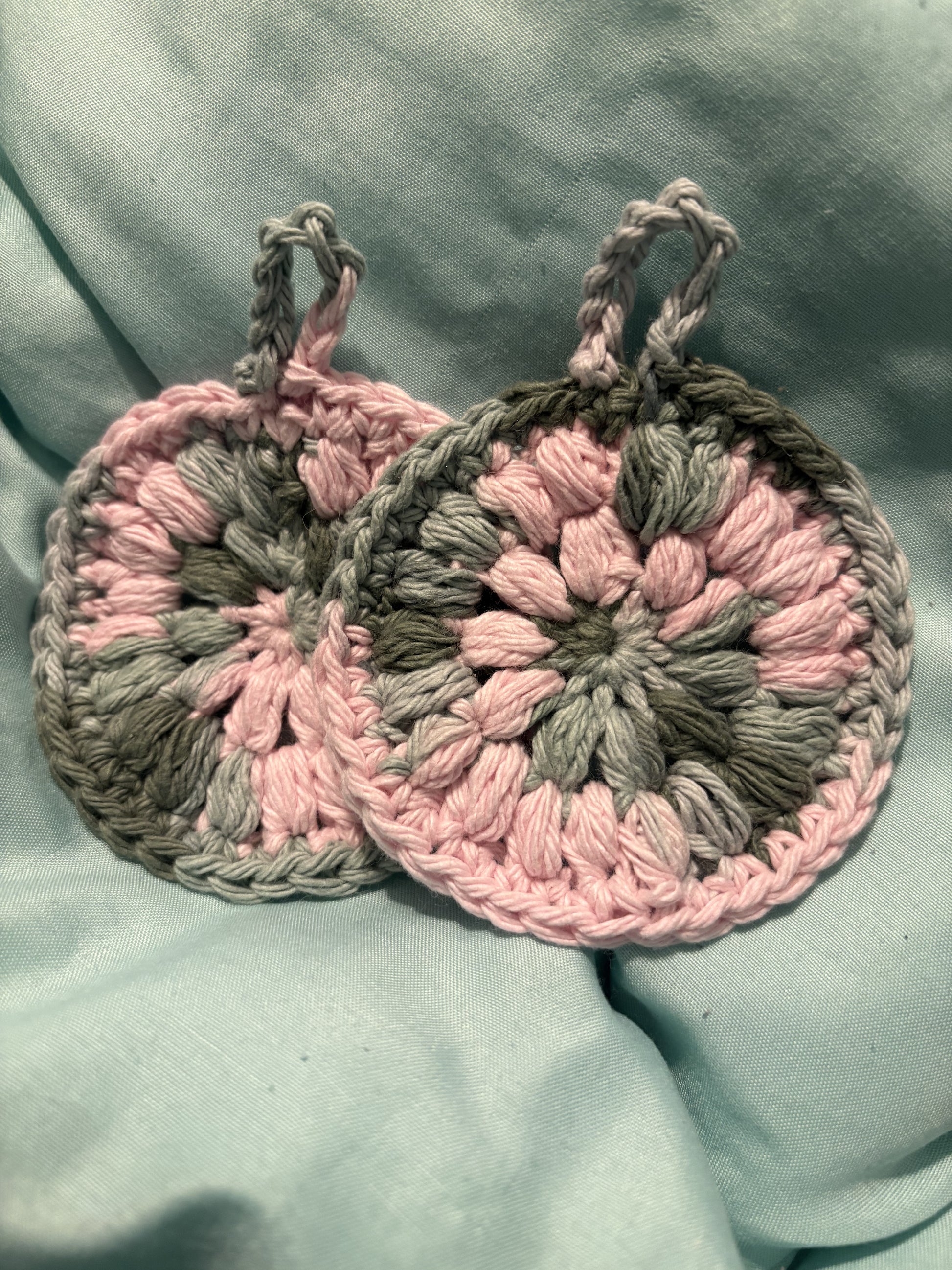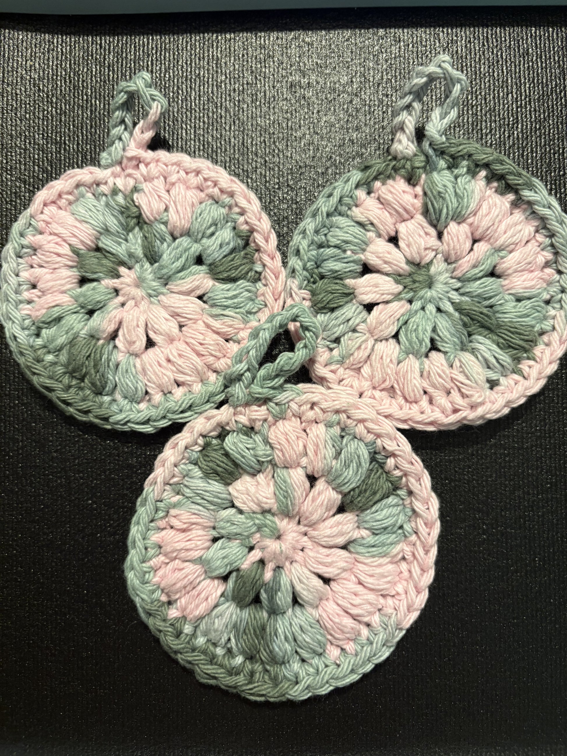 These crochet face scrubbies are perfect for daily use and on-the-go! Just add a little face wash and water, and you’re good to go! Easily hang the scrubbies up to dry after use with a convenient hook.