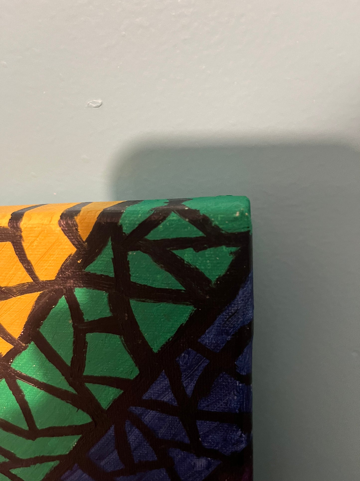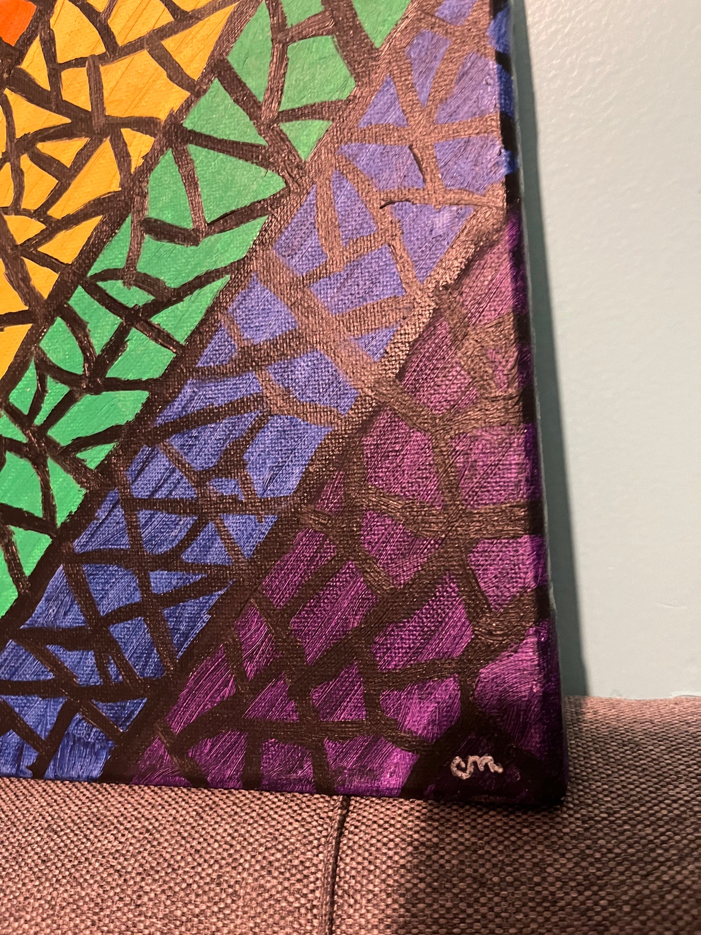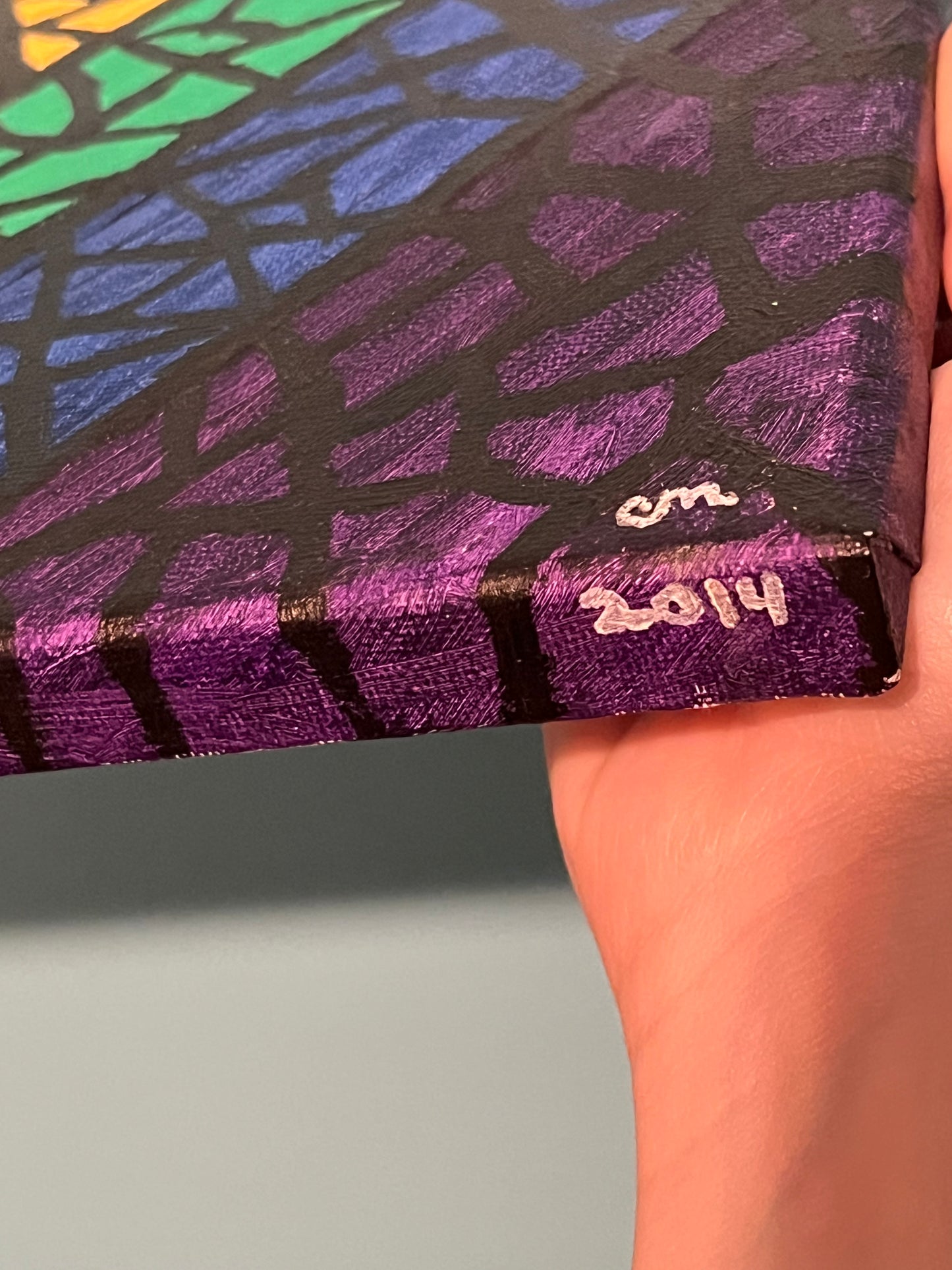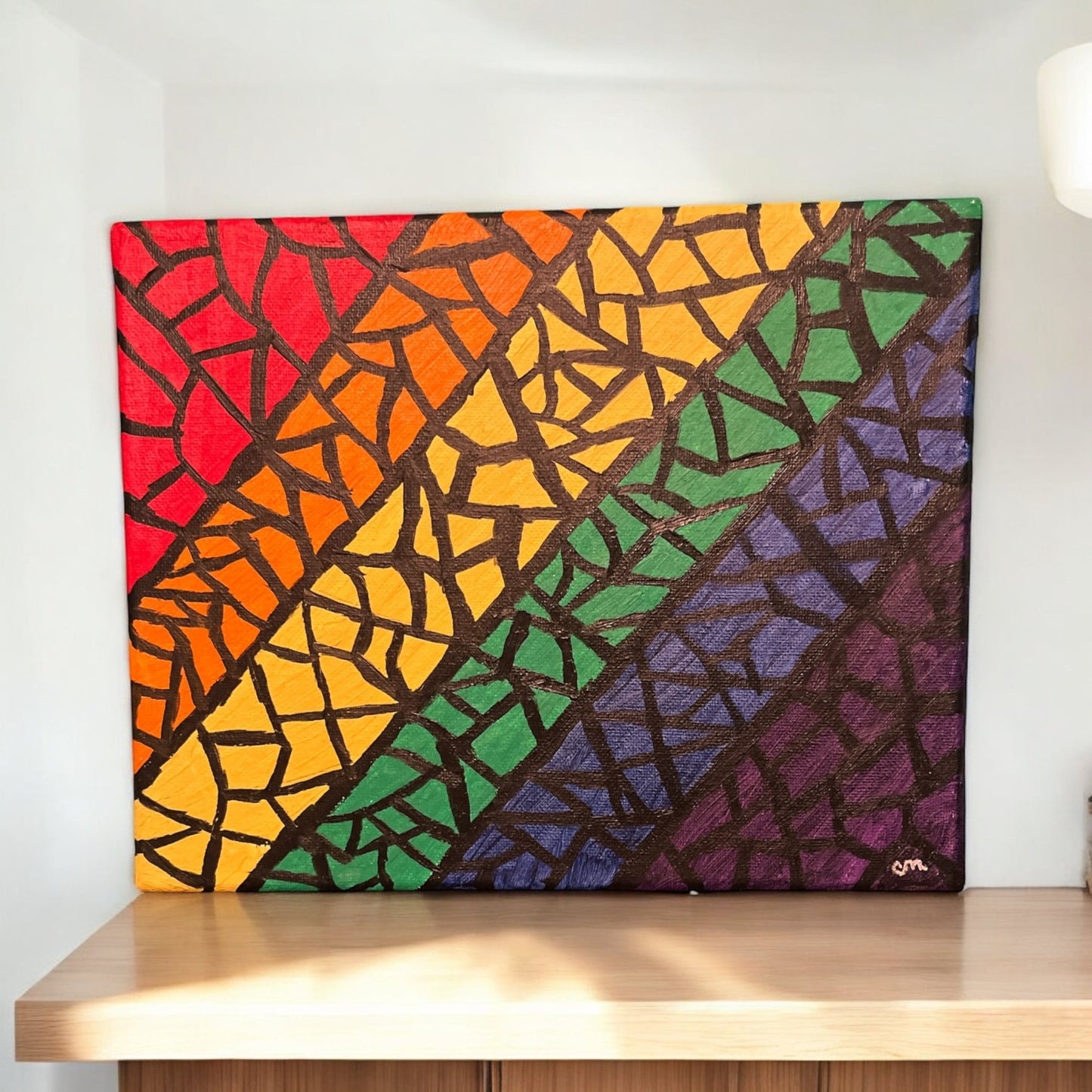 This is a rainbow colored, stained glass style original oil painting on 8x10 stretched canvas.